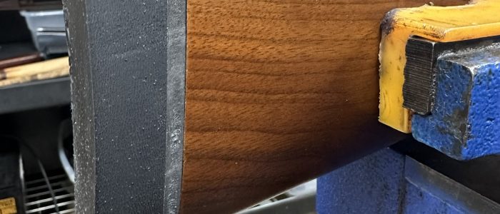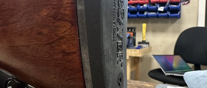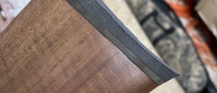 If your stock is already finished and in good shape, then the work for mating a new recoil pad is going to be a bit more, but it’s not terribly more. First we mount your new recoil pad, and make a trace of your stock onto it. From there we make a measurement of the angle of the comb of your stock (the top side) and then transfer it to the recoil pad by grinding it after taking it off your stock. We repeat the same process for the toe (bottom of the stock) so that the butt-pad follows the same end angle of your stock. Creating a really nice transition and look from the stock to the butt-pad. We will grind up to the lines we marked, and then do a bit of final fit with some hand sanding where needed. Generally you are going to be looking at about two shop hours of shop time which runs $140 plus the cost of the recoil pad. (Shortening of the stock is extra if requested)
